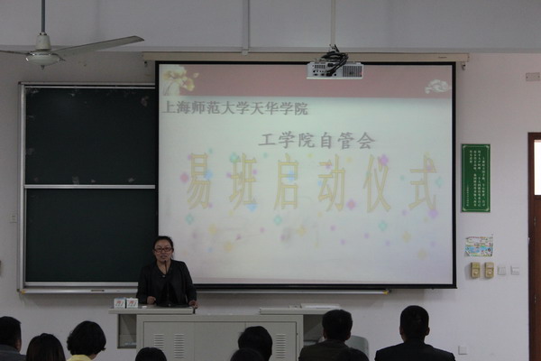| 4月10日,工学院学生自管会易班启动仪式在日阶103隆重举行。工学院党总支书记刘香连、校易班负责人王一青、工学院党总支副书记赵科以及各正副辅导员出席启动仪式。 会上,刘香连老师与王一青老师共同为工学院自管会易班成立揭牌,宣布工学院自管会易班网络互动社区正式成立。刘香连书记要求自管会成员应该主动、积极地参与到易班网络社区互动中,把易班作为一个工作新平台、宣传正能量的新阵地。 | ||