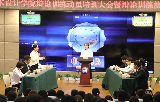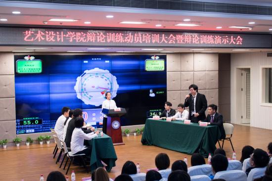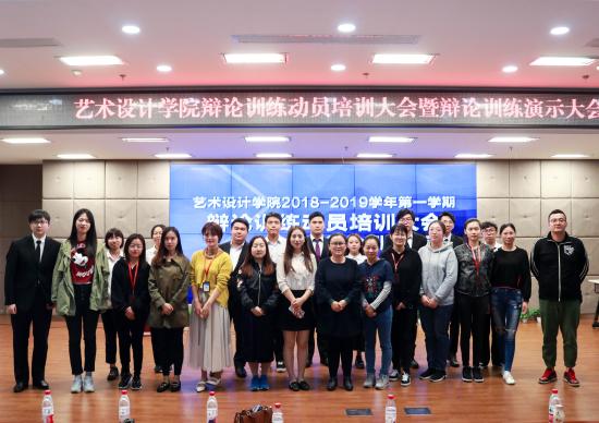 为推动本学期辩论训练的开展,提高学生的思辨能力,2018年10月16日下午4点30分,艺术设计学院辩论训练动员培训大会暨辩论训练演示大会于我校晖华楼小剧场举行,出席本次大会的有艺术设计学院党总支书记王慧荣,正副辅导员,及各年级学生代表。大会由我院党总支代理副书记沈蕾主持。