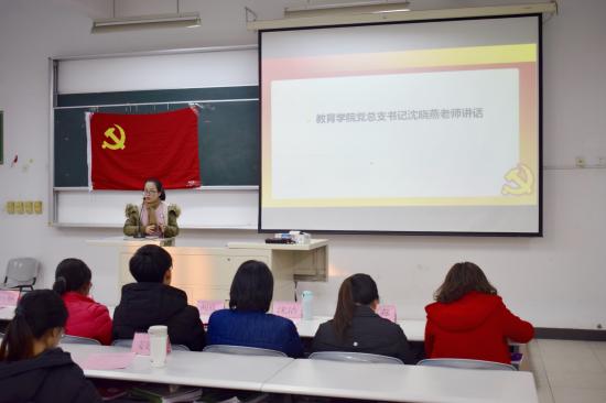 2017年3月7日下午16点30分,2016—2017学年第二学期教育学院党总支学期初工作布置大会在日华楼302阶梯教室举行。此次会议由党建中心承办,党建中心主任孙佳凤担任主持。莅临本次会议的老师有教育学院党总支书记沈晓燕老师、教育学院党总支副书记华芸老师以及各正副辅导员们,参加此次会议的学生为教育学院所有的入党积极分子以及党员们。