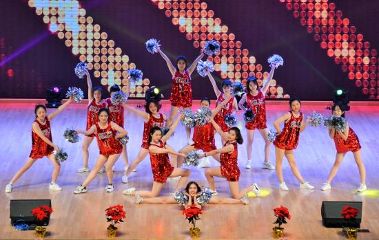 接着,活力四射的拉拉队登场,鲜红色的制服,闪片应和着霓彩灯与节奏,举手投足间,流光溢彩顾盼生辉,为初冬的微凉更添一分暖意。热辣青春的表演,将全场的气氛顷刻点燃。