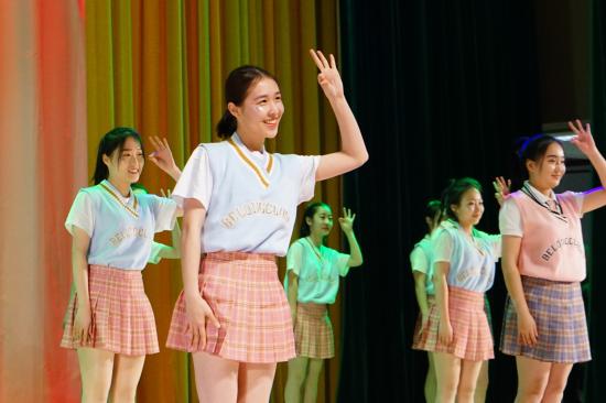 最后是学生会的节目,与迎新主题相呼应的服装,活泼可爱的音乐与舞蹈动作向在座的每一位传递出“他日你若为师,我祝你桃花朵朵开”的祝福。