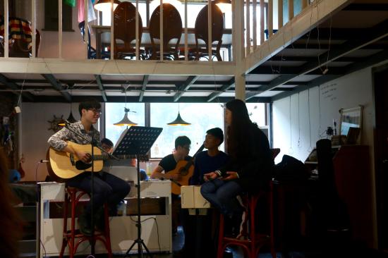 下午13时许,“我和天华有个约会”主题轰趴在舒适、惬意的校咖啡厅开始了。除了精心准备的糕点色拉,热情的驻唱乐队外,咖啡厅的独特氛围也为校友们展开了一个认识校园生活的新视角。活动过程中,校友们以歌会友,在优美动听的歌声中畅谈自己的工作经历,他们的人生感悟鼓舞和感染了在场的每一个人。校园轰趴在愉快的、轻松的交流中顺利结束。