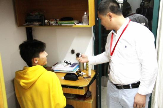 2016年10月19日20:00,艺术设计学院党总支、党员工作站在16级新生寝室推广的“学习型寝室”活动在大家的积极响应下正式拉开帷幕。本次活动旨在发挥党员的先锋模范作用,带领新生在宿舍学习一小时,培养新生的自主学习能力,营造勤奋读书,积极向上的班风学风。艺术设计学院党总支副书记徐姗姗,党员工作站指导老师张烁文,大一新生辅导员们以及班助理团队进行了巡查辅导,询问同学们学习的内容及学习的进度。