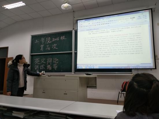 2017年12月7日19点20分于日阶402,我工学院组织召开了关于2016级英文辩论训练现场指导交流会,主要邀请了英文指导老师杨悦针对正反双方陈词和总结环节有针对性地进行指导。出席本次活动的还有党总支书记赵科、副书记金玫和李书祥以及2016级小组一辩和四辩选手。