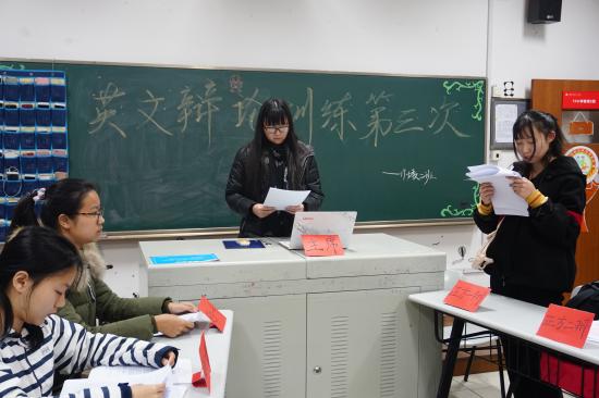 (17级学前教育(中美合作)1班学生辩论训练现场)