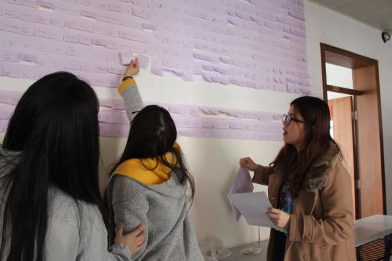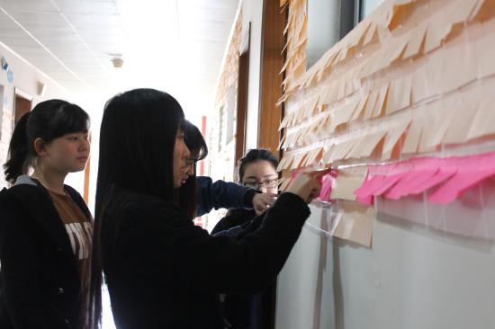 为认真落实学校提出的创建“四个天华”的要求,更好地打造教育学院党总支“文化引领成长·专业服务育人”的品牌特色,营造良好的文化育人环境,努力做到使学校的墙壁也说话,为即将到来的英语四级考试做准备。2016年3月20日下午,教育学院党总支在日华楼各班级教室外组织开展了集多样性和专业个性于一体的“我与英文共成长”楼层文化设计活动,教育学院全体2015级班助理和新生共同参加了此次活动。