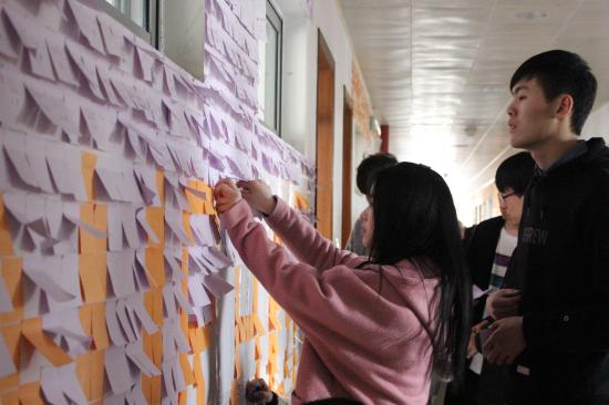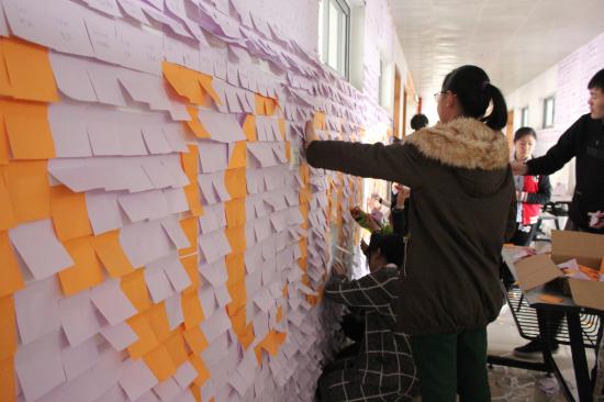 布置教室外墙的活动,不仅锻炼了学生的动手能力,而且增强了班集体的凝聚力,更重要的是能帮助学生积累更多的英语词汇。环境、氛围的教育,是润物细无声的熏陶和感染。此次的布置活动对良好学风起到了潜移默化的影响,营造了一种引领学生团结向上,共同迎接英语四级考试的文化氛围,有效地为校园文化建设增添了新的风景。