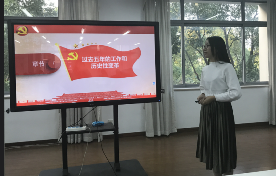 党总支副书记黄璐结合十九大报告内容,重点梳理了我国外交政策发展的脉络,即毛泽东时代的安全外交,到邓小平时代开始的经济外交,再到习近平总书记开始的大国外交,加深了同学们对我国外交政策方面的认识。