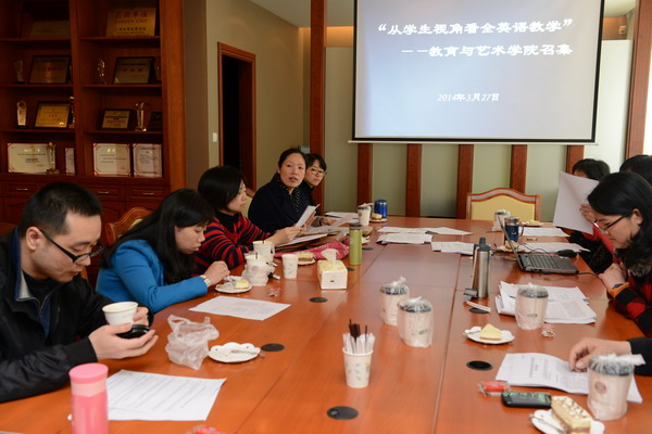 | 2014年3月27日下午14:45---16:00,我校“示范性全英语教学”暨博士班教师沙龙在明华楼教师发展中心举行。本次沙龙由教育与艺术学院承办,主题为“从学生视角看全英语教学”,通过调研访谈、问卷调查的形式,从学生需求角度进行分析讨论,以期对我校的全英语教学有一定的指导和借鉴作用,进而提升全英语教师的教研水平,并在全校范围内起到辐射带动效应,进一步推动我校国际化办学进程。 | ||
