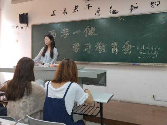 艺术设计学院环境设计专业第一、二党支部于2017年10月10日中午,在日华楼371教室举行了“两学一做”教育学习会。学习会由陈明晶书记主持,环境设计专业党支部的学生骨干队伍和入党积极积极分子参加。本次学习会主要围绕“习近平在上海”系列报道内容,牢固树立“四个意识”。艺术设计学院党总支深入推进“两学一做”学习活动常态化制度化,进一步把学生思想政治教育工作和党员实际行动表现统一到党中央和习近平总书记对高校思想政治工作的各项要求上来,以习近平总书记系列重要讲话精神为根本遵循,积极开展和组织喜迎党的十九大的系列活动。