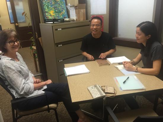 杨艳和杨悦老师西俄之行的另外一个重要目的就是拜访该项目西俄校方的负责人Cindy和Linda。在和两位外教的交谈中了解到,16级31位学生在美国一年的学习共分为4个学期,总计修满47个学分。其中,第一学期的安排包含4门专业课程,一门研讨课和8次幼儿园参观活动,共计13个学分。学生们被分为两个平行班,每班15(16)人,这种小班化授课更便于学生参与课堂活动和讨论,学习效果更好。Cindy和Linda充分肯定了15级学生的学习成果,并表示对16级的31位学生充满期待和信心。最后,杨艳老师就西俄校方对学生的照顾和教导表示感谢,希望今后两校之间能更紧密合作,培养出更多具有国际视野的优秀学前教育专业人才。