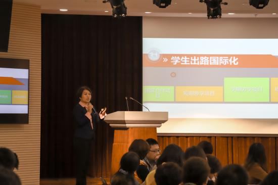 国际交流处处长胡珍就我校国际化的师资队伍建设、中外合作办学和留学服务等学校教育国际化的新进展向家长们进行了详细介绍。