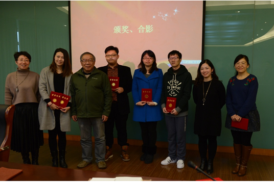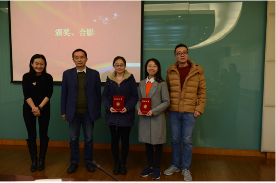 (人事处常务副处长曹卫、王大根院长、王茜副院长、胡雅楠副院长与三等奖获得者合影留念)