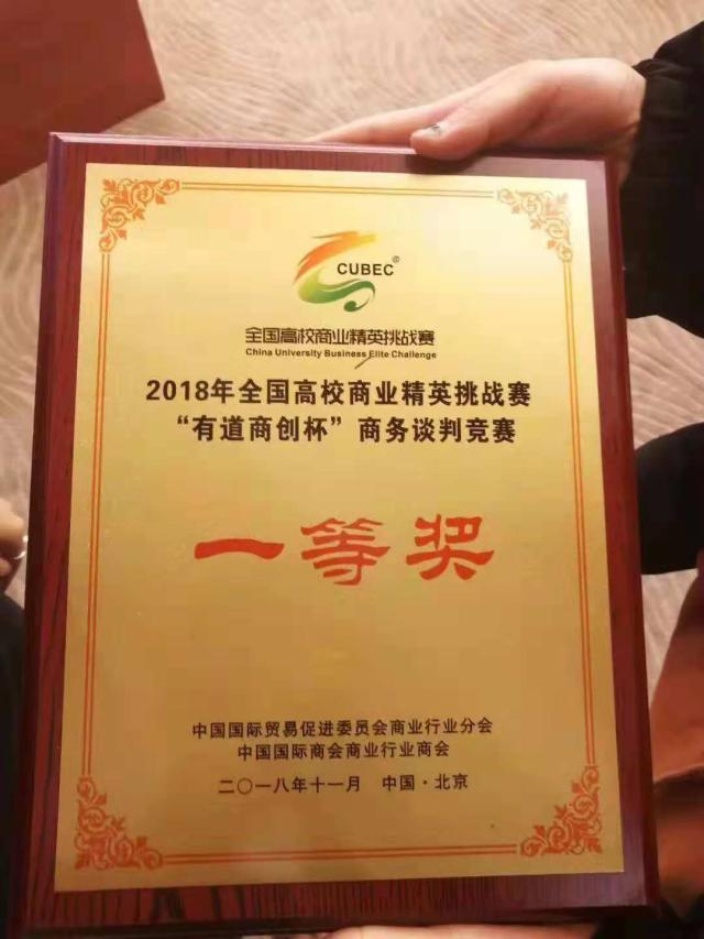 2018年11月24月上午,2018全国高校商业精英挑战赛“有道商创杯”商务谈判竞赛全国总决赛在北京对外经贸大学国际交流大厦举办。大赛由教育部高等学校经济与贸易类与贸易类专业指导委员、中国国际贸易促进委员会商业行业委员会共同举办。来自中南财经政法大学、重庆工商大学、江西财经大学、北京理工大学、广东工业大学等全国40多所院校70多支队伍参赛。