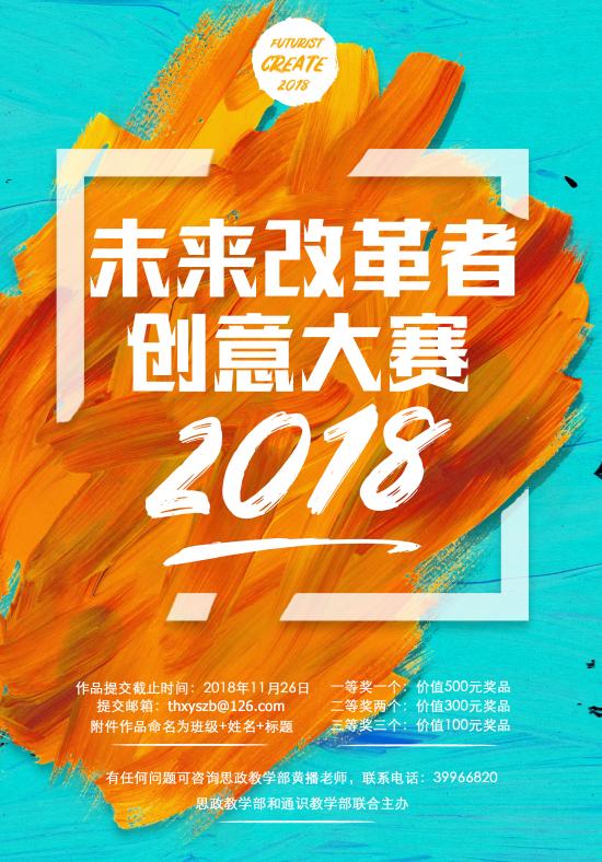 “青年兴则国家兴,青年强则国家强。青年一代有理想、有本领、有担当,国家就有前途,民族就有希望”,习近平总书记在十九大报告中对青年同志们寄以厚望。学生通过学习、实践、思考、学会了用设计思维的方法解决实际问题,既贴近现实,又有较强的理论支撑。希望有更多的学生参与到今后类似的活动中去,把自身的创造力和思维品质展示出来,将来走上社会,做一个真正的未来改革者。