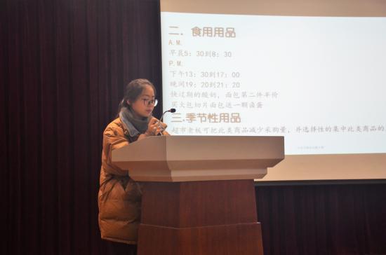 大赛的第六小组的创意主题为:教育超市滞销商品解决方案探究。他们首先着手研究学校教育超市商品滞销的原因,通过访谈、实地考察和发放调查问卷三种方式,进行了大量的数据搜集工作。通过对前期资料和数据的详细分析和梳理,他们提出了采用分时间段套餐形式售卖、消费换取积分、志愿者展开推销商品的活动、开展节日优惠活动等解决方案。最后,为了使他们的方案能够落地,惠及超市和学生双方,同学们还写成了调研报告交给了超市老板。