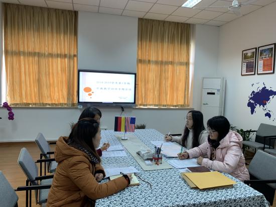 2019年1月14日,国际交流处处长胡珍、副处长张云、梁杰、教学秘书王颖超、外教培训专员张灏等召开本学期外教教学评估专题会议。会议旨在及时了解项目学生学习情况、外教授课情况及师生双方感受,以不断改进和优化项目管理、教师考核和教学管理,进而最大程度保证教学质量。