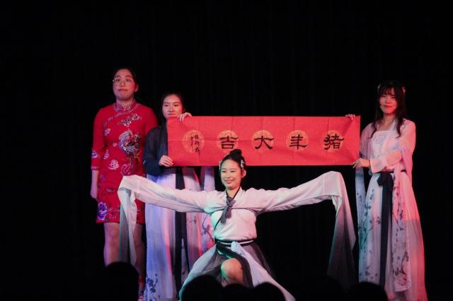 最后,春节晚会在全体访学老师以及部分音乐系同学的合唱中落下帷幕。此次春节联欢晚会由中美双方的同学们努力合作完成,除了参与演出的同学,还有许多同学作为工作人员在幕后参与了春晚,在舞台设计、场地规划、后勤安排等各项事务上加强了文化交流与合作,成功打造了一台展示中华民族文化特色的联欢晚会。