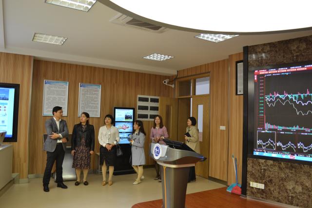 (调研团正在参观我校金融财务创新综合实训室)