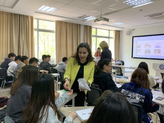 (美国伊利诺伊州立大学一行与合作专业学生见面)