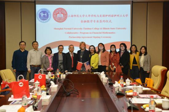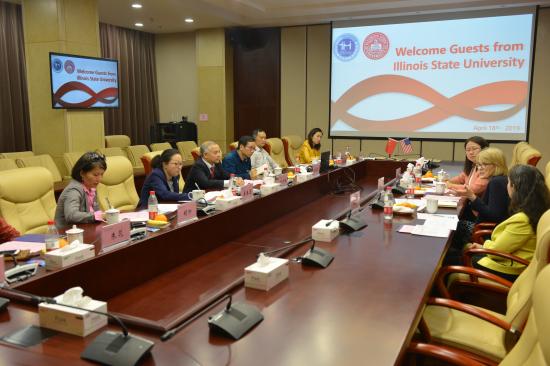 2019年4月18日,美国伊利诺伊州立大学分管教学的副校长兼教务长Dr. Murphy,副教务长Dr. Yazedjian及国际生录取中心执行主任Yimin Wang来访我校,并签订两校金融数学专业合作协议。校长叶才福、副校长龚春蕾、教育科技孵化中心兼幼教支持服务中心主任胡国志、国际交流处处长胡珍、科研处处长兼管理学院副院长翁跃明、艺术学院副院长朱花、语言文化学院副院长孙超热情接待。会议由副校长龚春蕾主持。