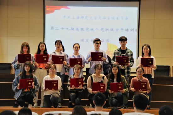 随后,大会进入表彰环节,由党校校长周凯波老师为138名学员颁发结业证书以及为14名优秀学员颁发荣誉证书。党校校长周凯波老师对顺利结业的学生表示热烈祝贺,对参与指导本期学习班的老师和工作人员表示衷心感谢。周老师指出,通过本次培训,学员们能够积极参加集中学习,认真组织讨论,达到了预期学习效果。使得同学们对党的认识更加系统、全面,理论水平有所提高,进一步端正了入党动机;进一步明确了今后努力的方向。