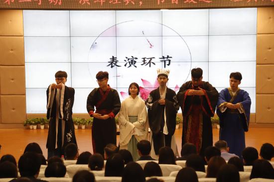 首先,教育学院以莎士比亚笔下的《皆大欢喜》拉开了本次大赛的序幕。教育学院的同学们用生动的表演,展示出莎翁笔下的人间故事,在远离尘世的亚登森林中,主人公罗瑟琳和奥莱多冲破了恶人们的重重阻隔,不但化解了恩怨,感化了恶人,还收获了甜美的爱情,给观众留下了难忘的印象。
