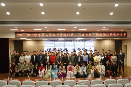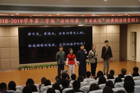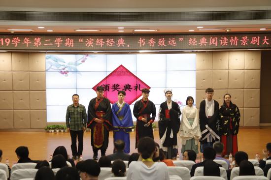 2019年4月29日下午16:30,学保处在晖华楼小剧场隆重地举行了本学期“演绎经典·书香致远”经典阅读情景剧大赛。学校校监史文老师,校党委副书记、学保处处长曹云林老师,校党委宣传部部长齐砚奎老师,校党委组织部部长周凯波老师,学保处副处长刘洪伟老师,通识学院耿松老师,学校经典阅读总负责老师华芸,各二级学院党总支书记以及全体正副辅导员参加了本次活动。