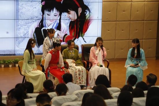 随后,管理学院生动地演绎了《红楼梦》中“林黛玉初进府” 的经典选段。无论是小心翼翼行事的林黛玉,还是“未见其人先听其声”的王熙凤,又或者是行事乖张任性的贾宝玉,同学们都演绎得活灵活现。透过贾府一大家子的群像式演绎,我们仿佛看到了贾府最昌盛时的样子,是那般的繁华,又是那般的静谧美好。