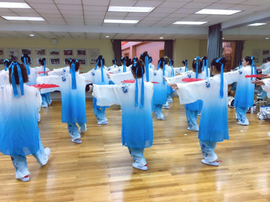 学期初始,功夫扇队引入了新鲜的血液——18级新队员。在团队训练的初期,功夫扇队采用每周集体一大训,小组一小训的模式,在临近比赛的前两周,开始了集中的强化加训。在一次次的训练和老师的耐心指导之下,同学们的动作越发标准、整齐、默契。
