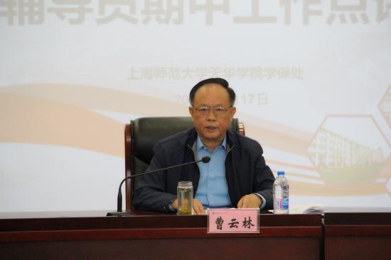 校党委副书记、学保处处长曹云林首先总结了本学期工作四方面特点:一是各学院总支对工作领衔统筹的好;二是绝大部分辅导员能在学生工作一线尽心尽责;三是学生工作开展比较活跃;四是校园安全稳定有保障。接着曹书记回顾了开学以来开展的六大项工作:一是中英文辩论训练落到实处;二是改进经典阅读的方式方法;三是大一、大二早晚自习管理规范;四是毕业生工作有序推进;五是校园活动丰富多彩;六是校园安全稳定。随后,对辅导员工作中存在的问题进行了通报,并提出四方面要求:一是要求全体学生管理工作者要从思想上、行为上适应天华学院转型;二是要心怀感恩之心对待自己的职业;三是努力抓好学期重点工作推进;四是全力抓好校园安全稳定工作。
