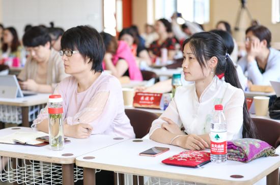 如今,众多教育工作者不可避免地承受着声带职业病带来的影响,其根本原因是发声方式不正确,对声带缺乏保护意识。贾老师通过工作坊活动,示范讲解了正确的呼吸方式和发声方式。贾老师带领学员们一同开嗓,体验正确的发声歌唱,用两首练声曲逐步深入讲解从气息到咬字,再到笑肌的使用;接着用一首经典红歌《绒花》,让学员们更直观地感受了声乐中的“呼吸”,练习了气息发声的技巧。