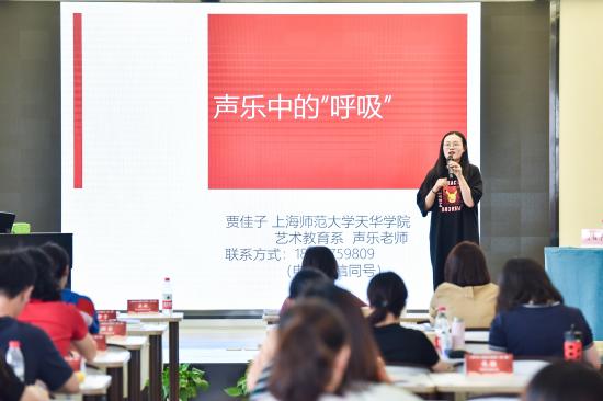 2019年7月5日中午,上海师范大学天华学院学前教育学院贾佳子老师,带领研修班全体学员开展了“小艺思”工作坊——声乐中的“呼吸”主题活动。