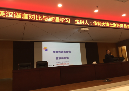 语言文化学院学生参加“英汉语言对比与英语学习”讲座2017年11月16日下午,天华学院语言文化学院学术委员会主席张春柏教授应语言文化学院邀请,来我校开2017-11-22 -