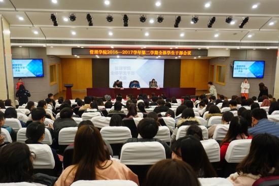 管理学院召开2016-2017学年第二学期全体学生干部大会2017年3月1日16点30分管理学院党总支在晖华楼报告厅召开了新学期全体学生干部大会。管理学院党总2017-03-07