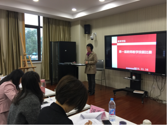 教育学院2016年度教师教学技能比赛圆满举办为提高教育教学质量,加强师资队伍建设。教育学院于2016年11月16日在光华楼录播教室开展了“2012016-11-21 -