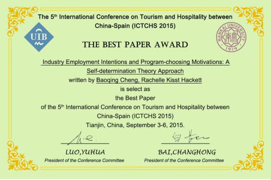 管理学院院长程葆青与美国太平洋导师合作论文获第三届旅游国际学术会议优秀论文近日,第五届中国-西班牙旅游与接待业国际会议(ICTCHS2015)暨南开大学第三届旅游国际学术会议2015-12-25 -