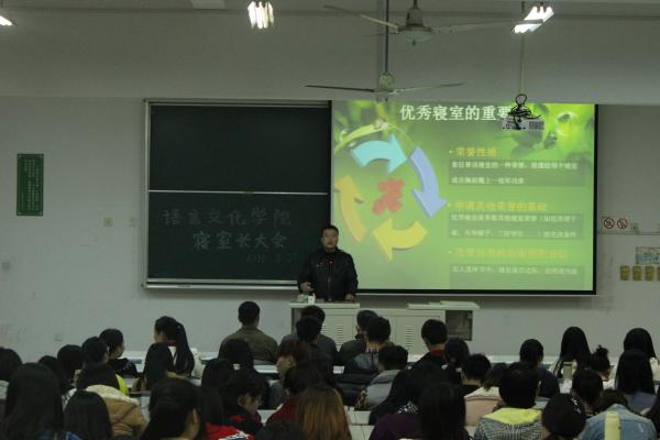 语言文化学院全体“第一次寝室长大会”顺利召开11月27日下午4:30,在日华楼日阶101召开了语言文化学院全体“第一次寝室长大会”,会议由语言文2014-12-02 -