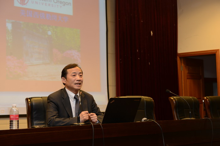美国西俄勒冈大学领导莅临我校洽谈合作项目并举办讲座