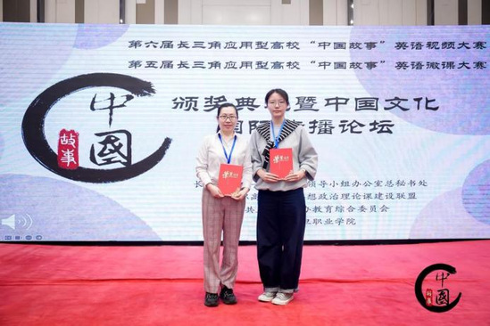 语言文化学院师生在“中国故事”英语大赛中再创佳绩!2025年10月25日,由长三角教育一体化发展领导小组办公室总秘书处、中共上海市民办高校工作委员会、上海市高职高专思想政治理论课程建设联盟、上海震旦职业学院联合主办的第六届长三角应用型高校“中国故事”英语视频大赛和“第五届长三角应用型高校“中国故事”英语微课大赛”颁奖典礼在上海举行。此次大赛吸引了来自长三角地区众多应用型高校参与,该赛事旨在通过外语教学融合课程思政,弘扬中国文化自信,进一步推动中国文化走出去。获奖师生合影本次大赛教师组中,柳莎的微课作品《文学中的饮食文化》在第五届长三角“中国故事”教师英语微课大赛中荣获二等奖。该作品以比较文学研究为切入点,从小说《红楼梦》中挖掘出传统美食文化的叙事功能,阐释了中华美食的选材、烹饪和类型所承载的诗性人文隐喻,突显了源远流长的民族信念“手中有粮,心中不慌”在新时代的共鸣。柳莎(左五)在颁奖典礼现场 学生组杨牧的作品《木之·生生不息The Wood Growing Endlessly》在第六届长三角应用型高校“中国故事”英语视频大赛中荣获三等奖。该作品聚焦于“潮玩品牌泡泡玛特”与“非遗木雕”的融合创新,以青年的视角探寻传统文化生生不息的2025-10-27 -