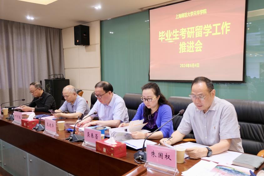 学校召开2025届毕业生考研升学工作推进会为提升人才培养质量,扎实推进国内考研和海外升学工作,明确各学院和职能部门任务分工,6月4日上午9:30,学校在明华楼会议中心召开了2025届毕业生考研升学工作推进会。党委书记高建华、校长叶才福、副校长龚春蕾、副书记曹云林出席会议。七大二级学院教学副院长、总支书记,通识学院、马克思主义学院相关负责人,以及学保处、教务处、国际交流处、就业指导中心负责人参加会议。会议由副校长朱国权主持。 首先,曹云林副书记对2024届毕业生整体考研升学情况进行了汇报,并对下一步考研重点工作提出了相应建议。然后由就业指导中心副主任吴莺介绍了《天华学子考研留学风采与资料汇编》与《天华学子考研升学指导手册》的编写情况。接着,七大二级学院依次做了针对考研升学概况、采取的措施以及后续的工作思路三方面的工作汇报。通识学院、语言文化学院和马克思主义学院相关负责人分别介绍了考研复习中数学、英语和政治辅导课程的开设情况,规划了后续要开展的具体工作。随后,教务处、国际交流处、就业指导中心和学保处相关负责人分别就毕业生考研升学工作提出了各自的思考与建议,并表示将为毕业生提供必要的支持。龚春蕾副校长结合“增量发展”的概念,指出要关2024-06-06 -